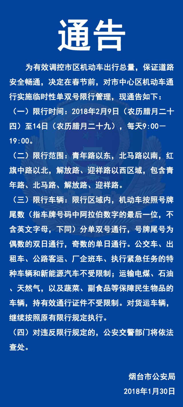 [车展/促销/报道] 烟台市机动车春节前限行通告